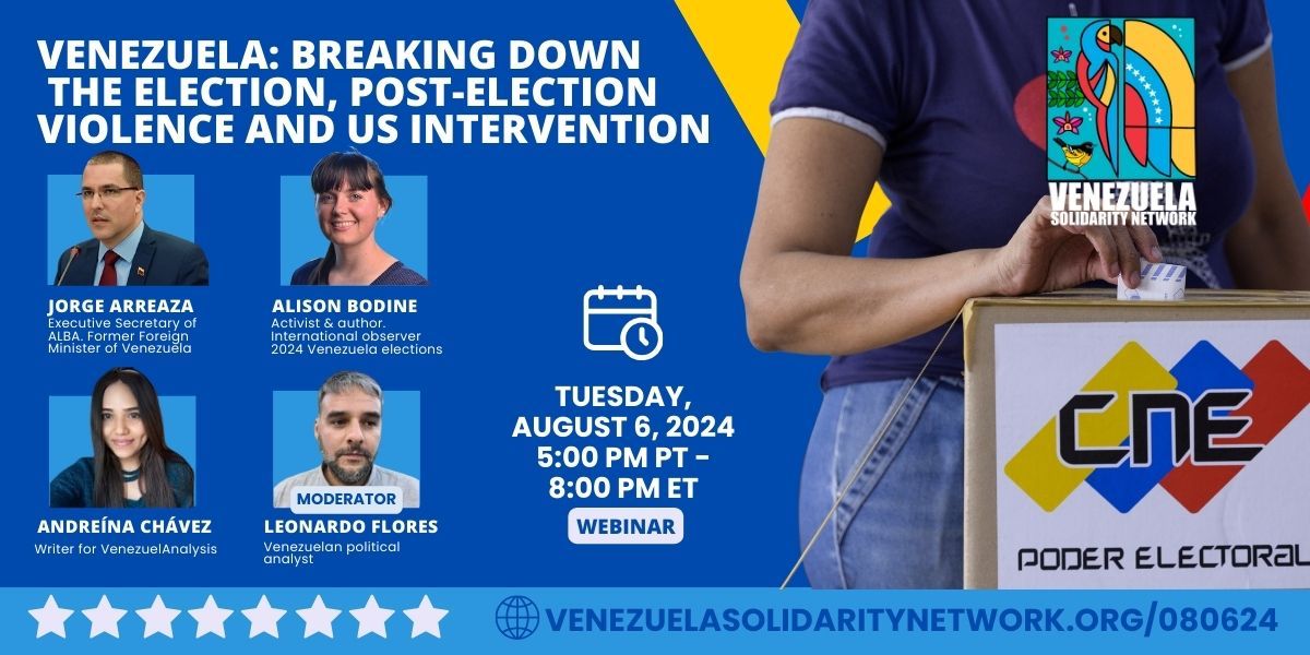 Alliance for Global Justice congratulates the Venezuelan people for a well-organized electoral system that was implemented on July 28 in an atmosphere of peace. We also congratulate President Nicolás Maduro on his re-election and the Venezuelan National Electoral Council (CNE) for fulfilling its constitutional duty by administering a free and fair election. We categorically denounce reports by hostile foreign governments and corporate media sources aligned with them that seek to undermine the legitimacy of the Venezuelan election and the results announced by the CNE. We repudiate the insinuation of fraud that, in a destabilization campaign coordinated by the United States and including several of its client states in Latin America and elsewhere, purports that there are irregularities in the July 28 vote count. Such claims have been repeated by the far-right opposition to the United Socialist Party of Venezuela (PSUV) for several months leading up to Venezuela's presidential elections, with U.S.-backed candidate Edmundo González refusing to accept the election results unless he wins. It should be noted that these claims have been made against the broader backdrop of multiple assassination attempts against Nicolás Maduro pointing to different North American agencies as the intellectual authors of the attacks, "heavy investment" aimed at influencing Venezuelan civil society via funding agencies such as USAID and the National Endowment for Democracy (NED) and the renewal of illegal U.S. sanctions on Venezuela in violation of the Qatar Agreement. Unsurprisingly, the July 28 electoral victory of President Nicolás Maduro has been met with aggressive opposition from the Venezuelan far-right, under the orchestration of U.S.-funded Unitary Platform leader María Corina Machado and her puppet Edmundo González. González is among the only candidates who has refused to accept the terms of the Barbados Agreements, which required all parties to recognize the results of the elections and refrain from any engagement in violence. González, a former diplomat and alleged CIA agent with ties to the notorious School of the Americas, has joined Machado in promoting violent far-right mobilizations across the country, calling on the "international community" to reinforce the opposition's claimed victory while refusing to cooperate in the Supreme Court of Justice's investigation of the elections. We are not surprised to see the Venezuelan people responding to this latest attack on their revolution by taking to the streets to defend their vote and their democracy. We pledge to do the same in our respective countries, and to demand that the United States and all countries respect the decision expressed by the Venezuelan people on July 28, as announced by their legitimate authorities. We demand respect for Venezuela’s self-determination and reject all attempts by the United States and its geopolitical allies to interfere in and destabilize Venezuela's sovereign affairs. Such efforts are not only in violation of international law but also basic standards of diplomacy. |