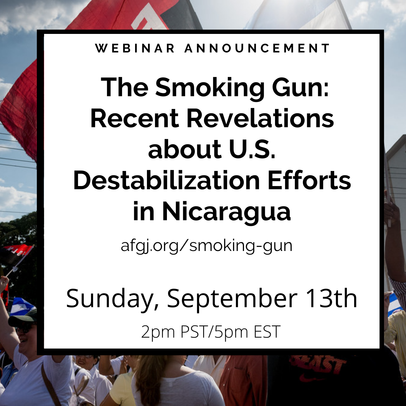 Having already resumed illegal unilateral coercive measures attacking Nicaragua’s economy, the US government is now openly supplementing its economic aggression with a program intended not just to supplant Nicaragua’s Sandinista government but ultimately to destroy Sandinismo as a viable political movement. They want to turn Nicaragua into Bolivia (where a US-supported 2019 coup forced the elected president into exile). On July 31 Managua’s Radio La Primerísima revealed the contents of a USAID document with details of this next (or probably already begun) US government effort at regime change. The document outlines the main elements of a program called Responsive Assistance in Nicaragua (RAIN). Join this webinar where our distinguished panelists will be discussing the RAIN document, as well previous efforts at destabilizing the Nicaraguan economy and disrupting fair elections. | |